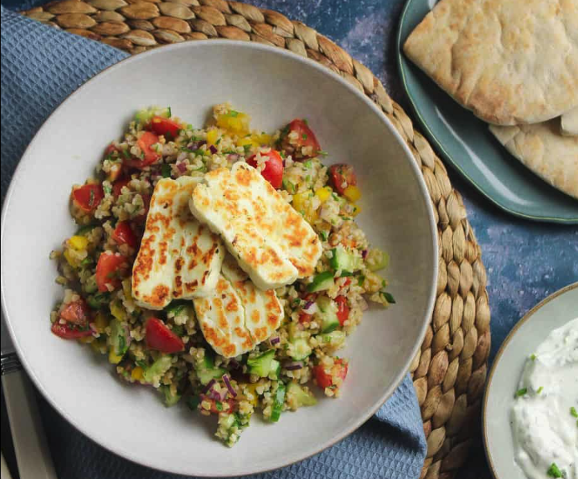 Řecký grilovaný sýr halloumi, tabbouleh salát s bulgurem*